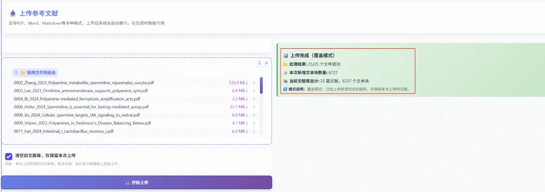 image-20260113142928833按上图顺序操作,可以直接把刚刚下载的文献都上传,系统会自动分析。
