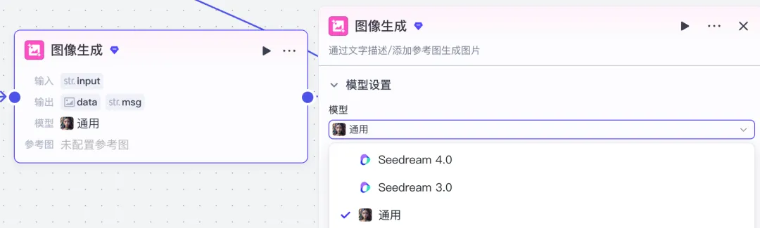 选模型:模型设置里选 “通用”(也可以根据需求选 Seedream 4.0/3.0)。