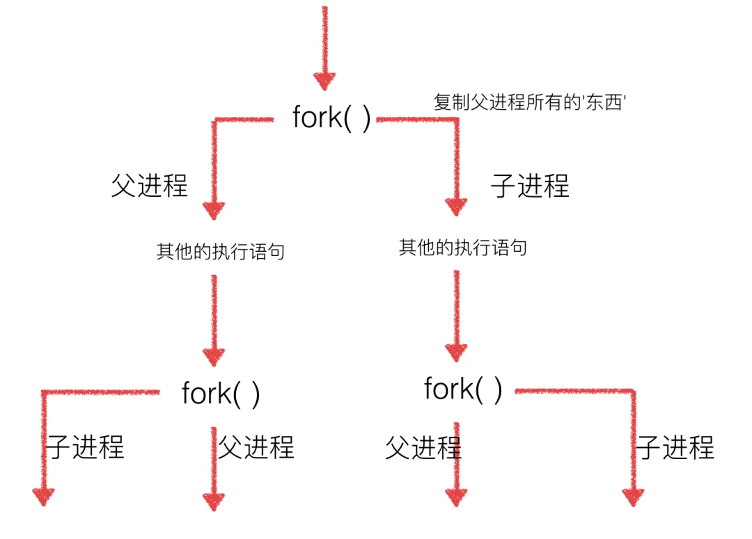 - 程序执行到os.fork()时,操作系统会创建一个新的进程(子进程),然后复制父进程的所有信息到子进程中