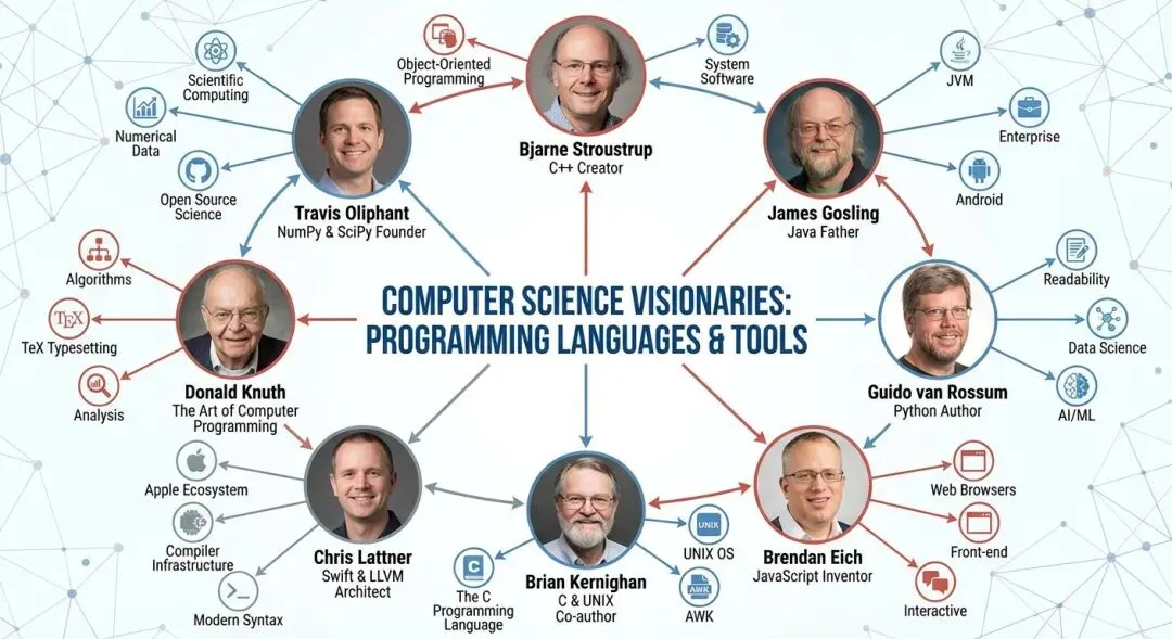 编程语言演进并非一个简单的技术进步故事。它是一个关乎哲学、妥协,以及对表达人类逻辑的更好工具的不懈追求。八位架构师——Stroustrup, Gosling, van Rossum, Eich, Kernighan, Lattner, Knuth和Oliphant——每位都带来了关于“编程应该是什么”的独特愿景。这些愿景并非相互冲突,而是代表了价值观多维空间中的不同点。为一组价值观优化的语言必然会牺牲其他价值观。编程语言的历史就是探索这个空间、寻求更好的平衡和综合的历史。
