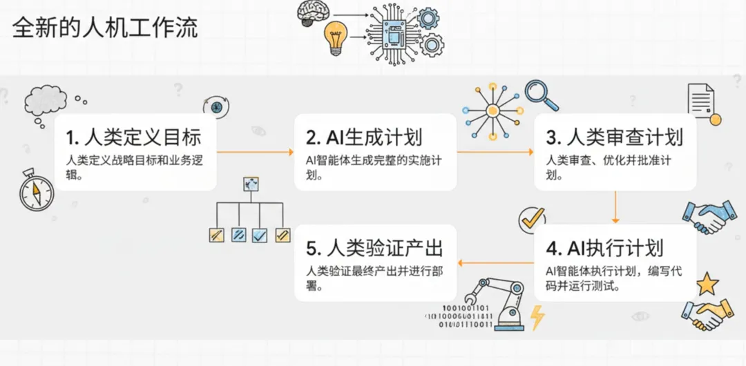 对于一些简单展示类的需求,AIcoding是安全可靠的。但对于一些复杂业务,AIcoding的可靠性与安全性还需继续提升,可能目前而言,AIcoding能替代的是初级程序员的岗位。如下图,可能是目前更加高效、安全、可靠的开发工作流。