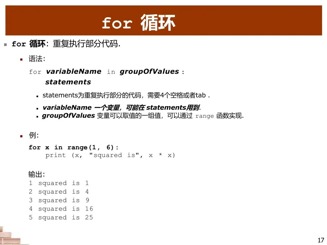 for循环是处理重复任务的基本工具。它的工作原理很直观:对于一组值中的每个值,执行一段代码。在Python中,我们通常使用range()函数来生成一组数字,然后对每个数字执行相同的操作。例如,我们可以轻松地打印1到5的平方数。for循环的语法清晰易读:以“for”关键字开始,指定一个变量名,然后是“in”关键字和一组值,最后是一个冒号和缩进的代码块。这种结构体现了Python“可读性计数”的设计哲学。