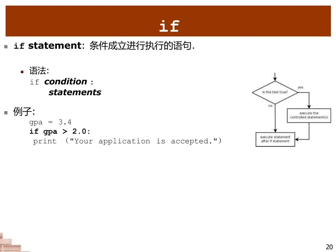 在现实生活中,我们经常需要根据条件做出决策,程序也是如此。Python的if语句让程序能够检查条件并相应地执行不同的代码。基本的if语句包含一个条件表达式和一个代码块,只有当条件为真时,代码块才会执行。例如,我们可以检查学生的GPA是否达到要求,然后决定是否接受其申请。这种条件判断能力使程序能够适应不同的情况和数据。
