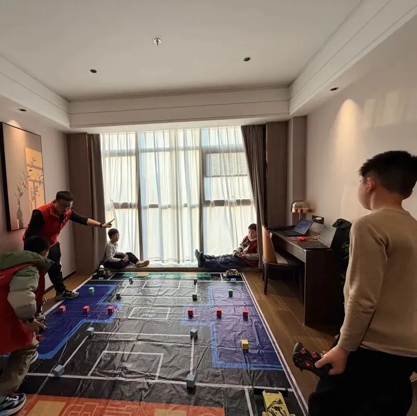 即使在赛前一天,小铁匠们丝毫没有放松警惕,立刻开启赛前加训模式。一次又一次地进行模拟比赛,复刻赛场节奏。指导老师全程守在现场,目光紧盯着机器人的每一个动作和同学们的操作细节,推演复盘。