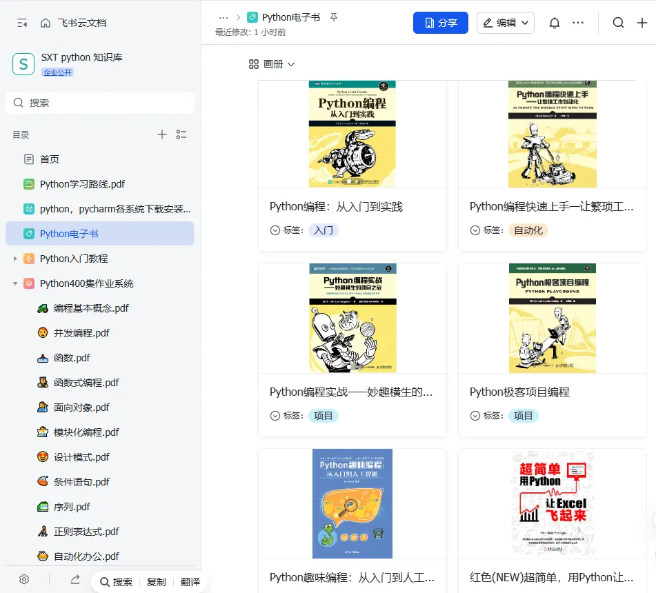 除这三本书外我还整理了其他的Python学习资料,都放在知识库了!