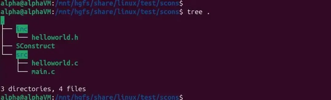 scons/├── inc/│ └── helloworld.h├── src/│ ├── helloworld.c│ └── main.c└── SConstruct