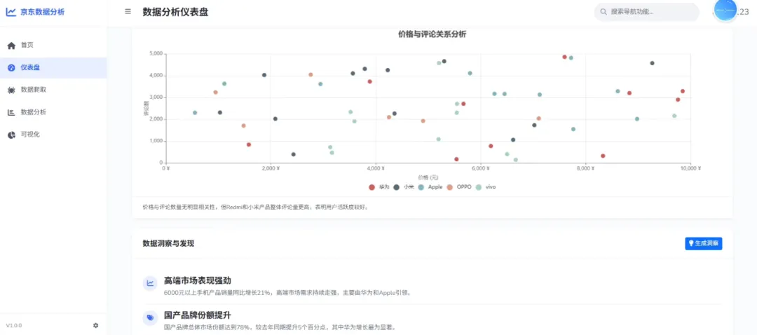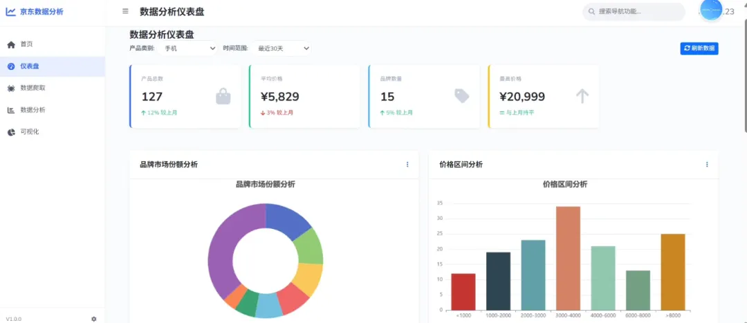 爬虫爬取的数据为京东网,首页有大屏可视化的效果。python商品数据爬取分析可视化预测系统是一个基于Python和Django框架的应用,通过Selenium爬虫技术从获取商品销售数据,并将其存储数据间范围。系统采用线姓回归机器学习模型进行消量,并利用Echarts可视化库生成各种图表,帮助用户直观分析销售趋势。该系统旨在为用户提供便捷的数据获取与分析工具,支持决策参考。