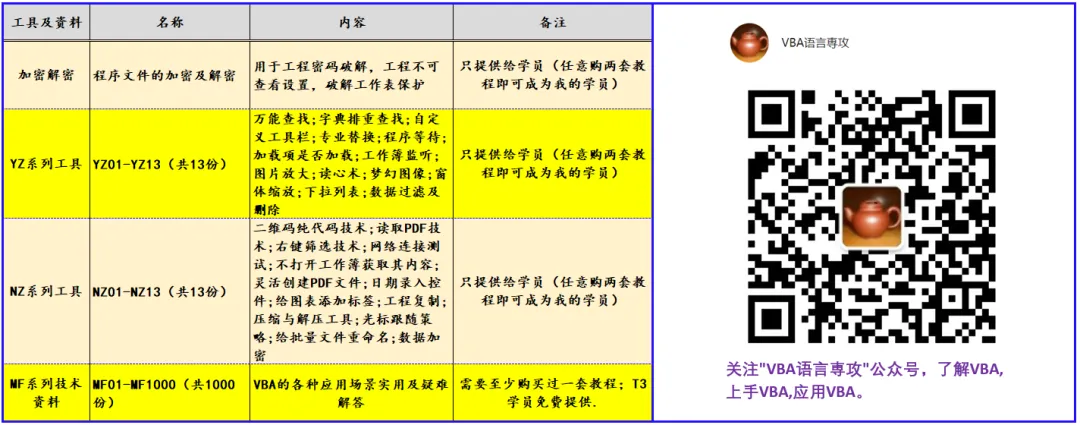 如果您只是一般的职场VBA需求,可以打包选择7.1.3.9教程+汉英手册,第7套教程是入门,第1套教程是入门后的提高,第3套教程字典是必备的VBA之精华,第9套教程是实用的典型案例讲解。这四套教程内容掌握后足以处理一般工作中的问题,实际写代码的时候再辅助代码汉英手册,足矣!如果您想进一步提高,就需要选择高级阶段的教程了。