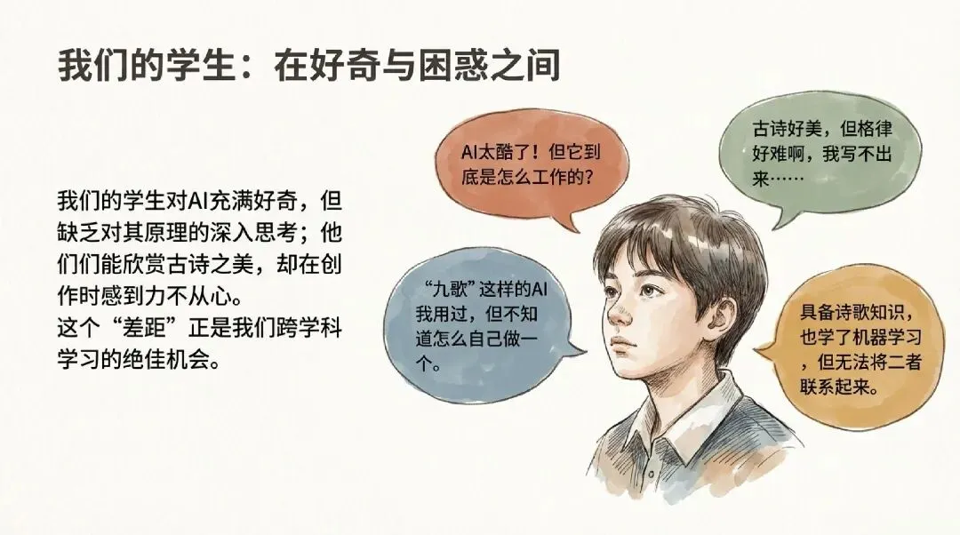 当学生既能欣赏“落花人独立,微雨燕双飞”的意境,又能理解生成这句诗的AI模型如何工作——他们便获得了与未来对话的能力。