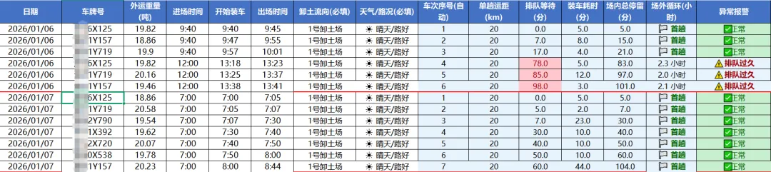 空间维度:同时接入多个土场数据,自动识别不同线路的物理运距。