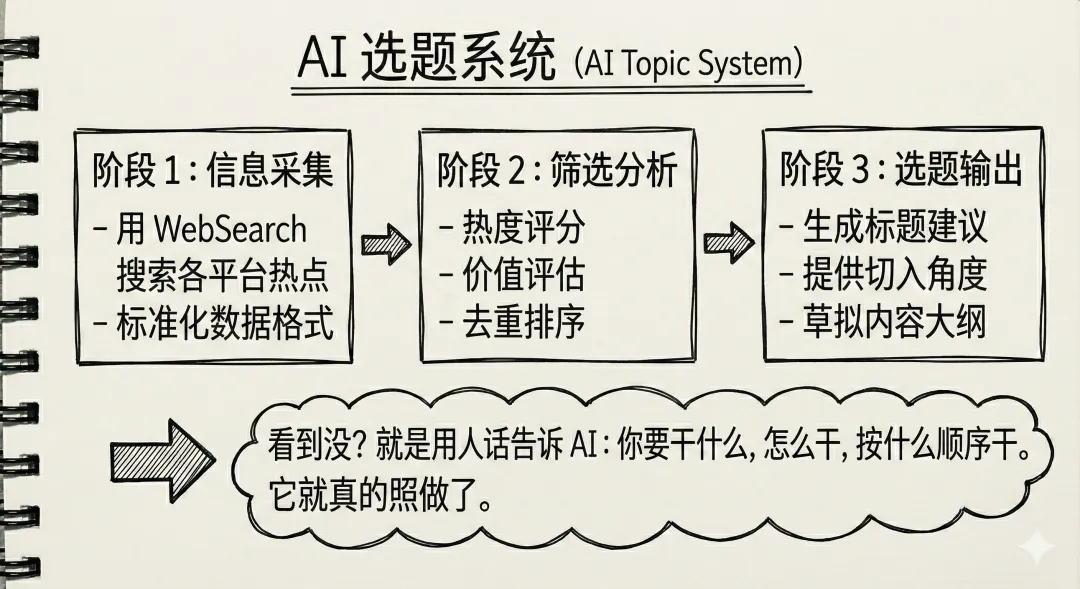 我用三个 Markdown 文件,搭了一套自动化选题系统。没写一行代码,但这玩意儿真的能跑。