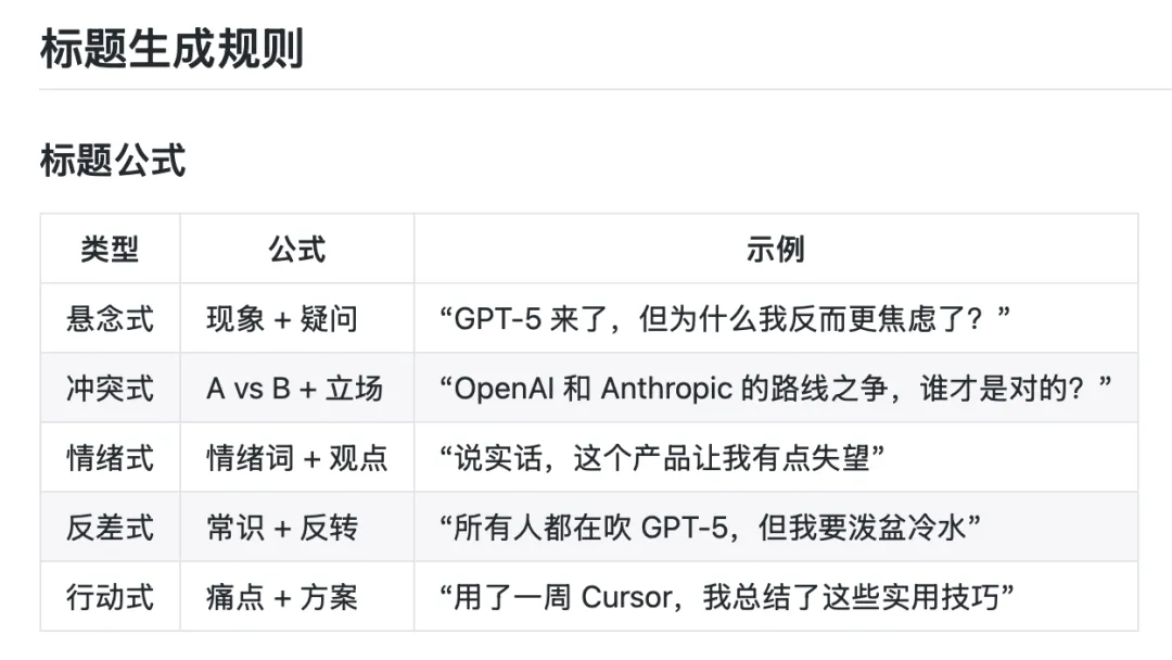 「我想要这样的标题」,然后贴三个例子。