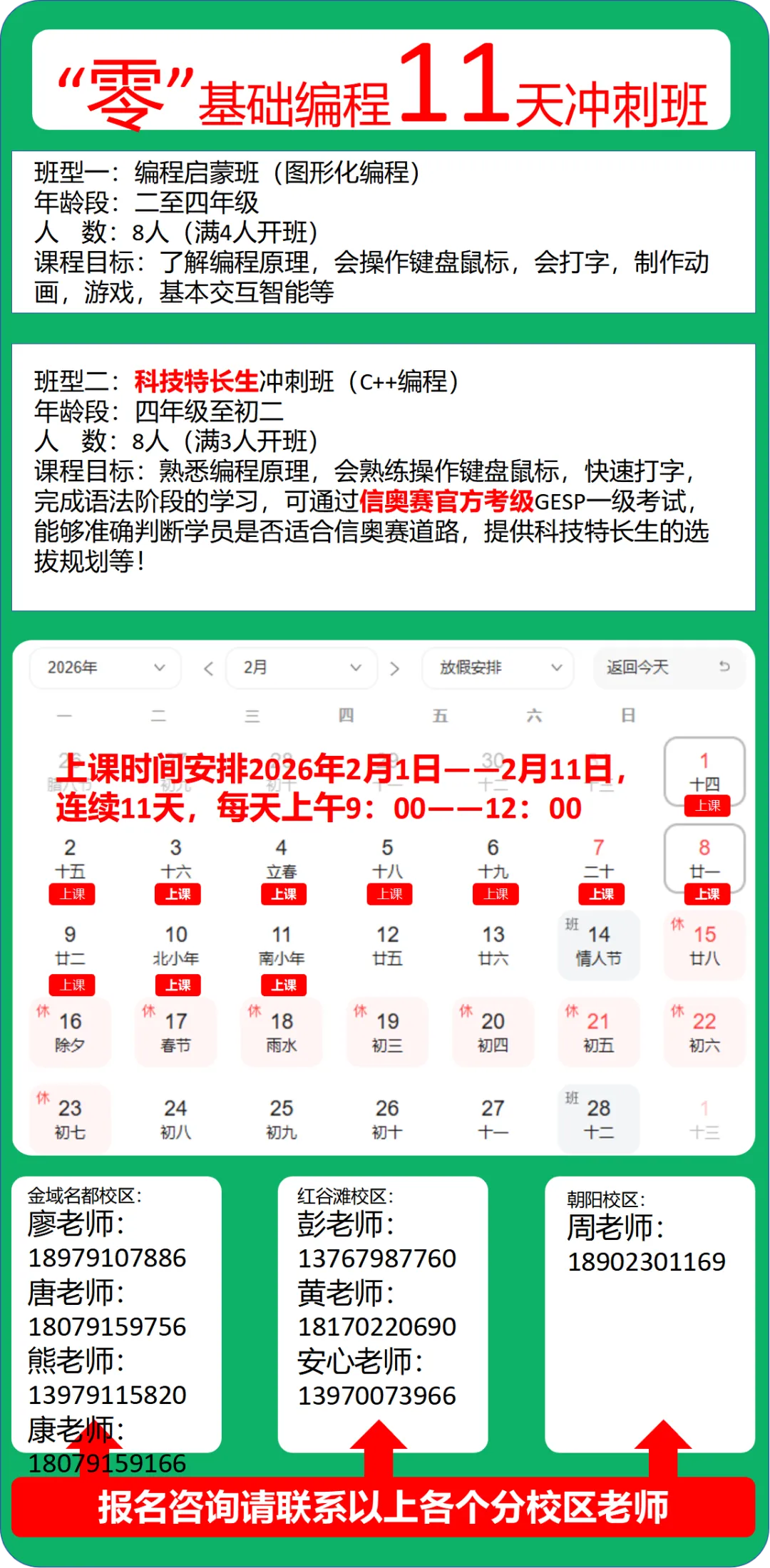 寒假开新生班:
