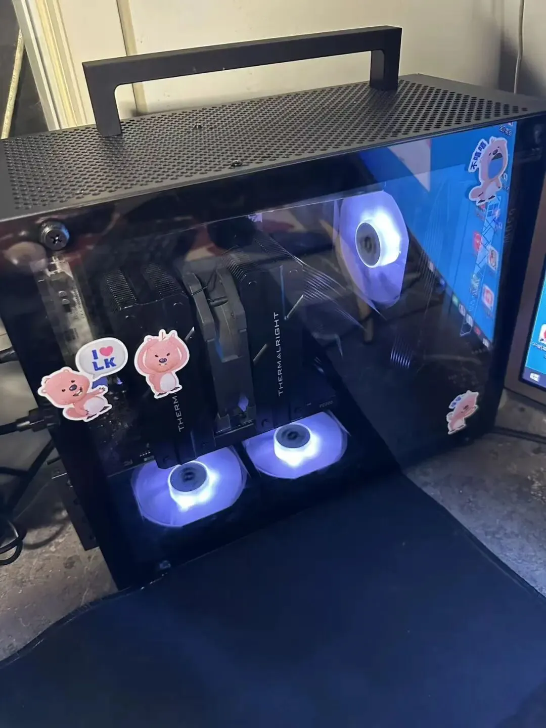 2. 机箱灯光扩展:添加2个ARGB机箱风扇(全新)安装于机箱进出风口,配合1条12cm ARGB灯带(全新),实现基础灯光环绕(花费约180元);
