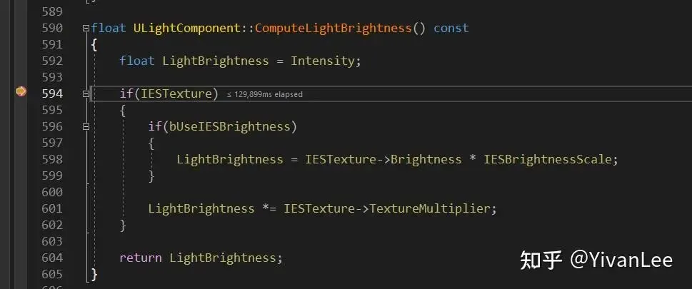 这个ComputeLightBrightness()是一个虚函数,不同的灯光有自己的计算版本。