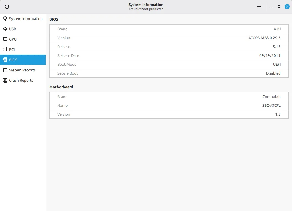 “PCI”页面可以详细查看电脑的内部组件。PCI ID 和所使用的驱动程序在排查 PCI 设备时非常有用。