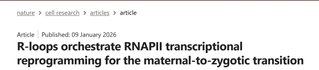 参考文献:Li, Y., Li, Q., Wang, X. et al.R-loops orchestrate RNAPII transcriptional reprogramming for the maternal-to-zygotic transition. Cell Res(2026). https://doi.org/10.1038/s41422-025-01208-2