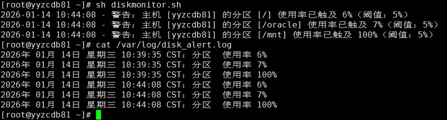 echo"$(date):分区 $PART 使用率 ${USAGE}%" >> /var/log/disk_alert.log