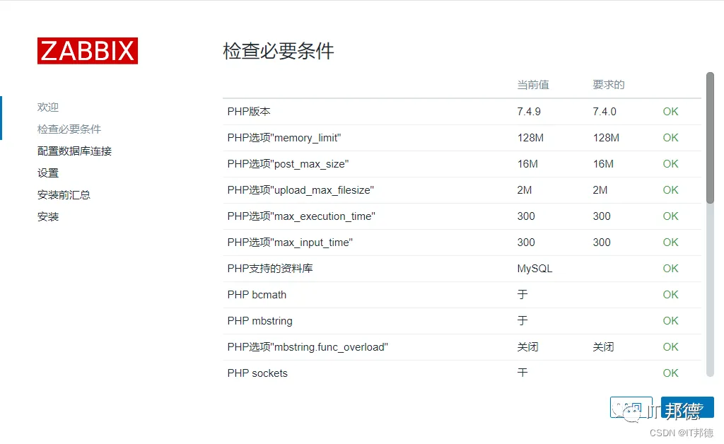 浏览器:http://192.168.1.30/zabbix/setup.php