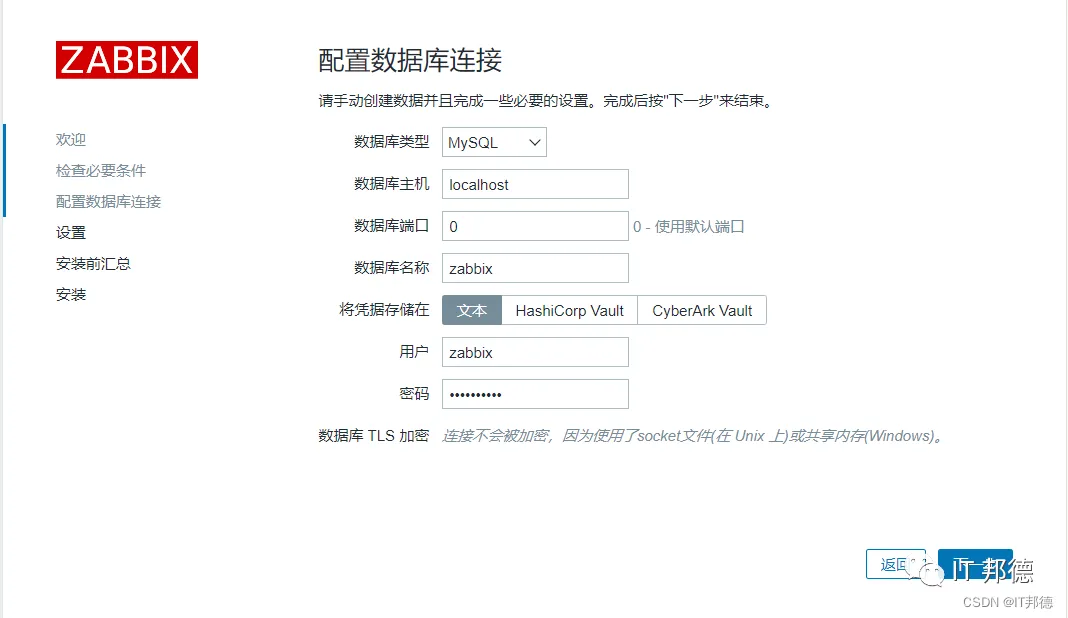 #这个要输入的密码就是在MySQL中创建zabbix数据配置的密码