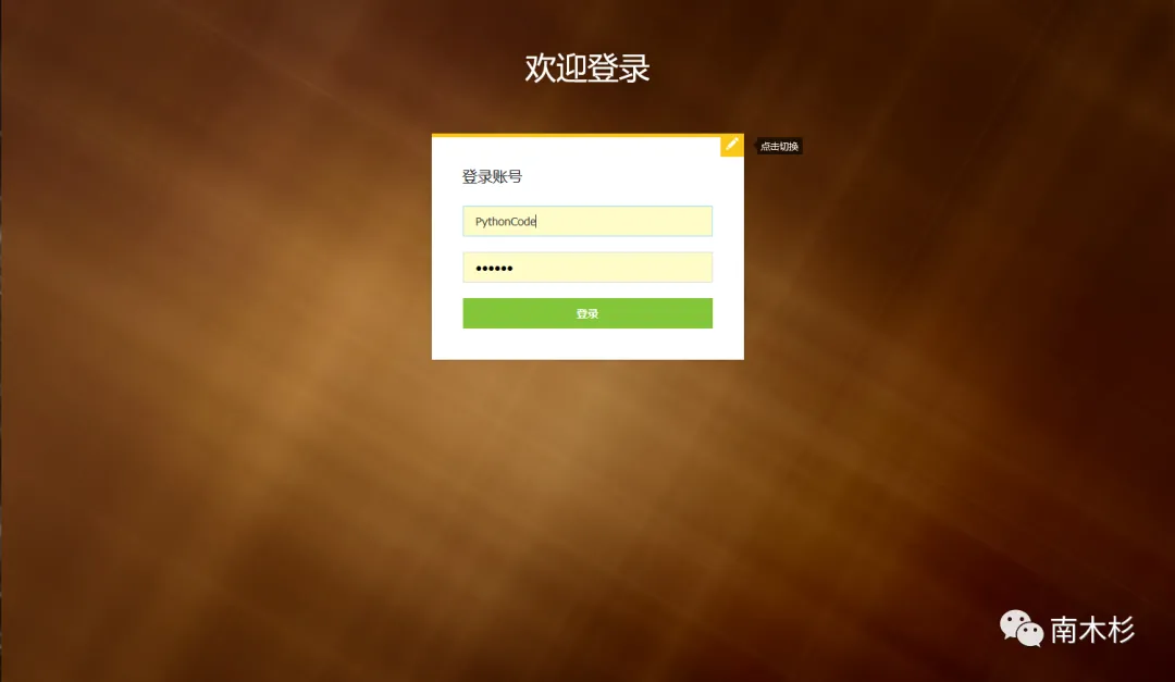 “输入账号密码登入系统,然后进入页面,可以切换为注册页面,输入账号用户名密码注册账号登入。
