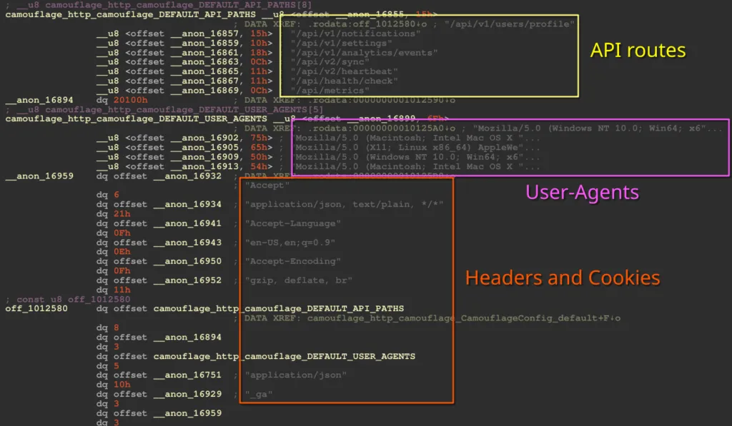 在网络层面,VoidLink 试图使外发的网络连接看起来合法;多个模块负责隐藏流量。其中有一层负责 HTTP 伪装,旨在使请求看起来像正常请求。