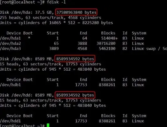下图是我的虚拟机的情况,三块IDE的硬盘。容量分别是:
