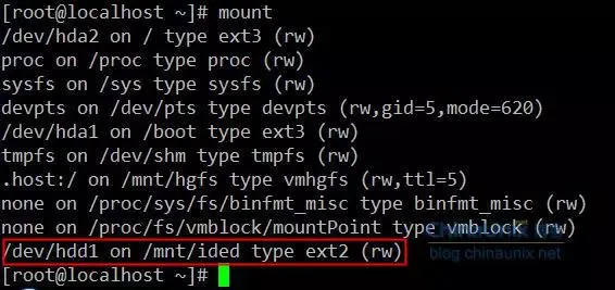 对于ext2/ext3文件系统来说数字签名Magic signature都是0xef53,如果不是那么它一定不是ext2/ext3文件系统。这里我们可以看到,我们的/dev/hdd1确实是ext2文件系统类型。