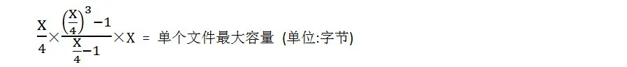 所以,我们可以得出不同block大小,对单个文件最大容量的影响。假设block大小为X字节,则: