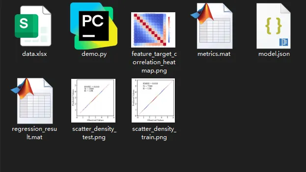 保存的regression_result.mat数据中分别保存了名字为Y_train、y_pred_train、y_test、y_pred_test的矩阵向量。
