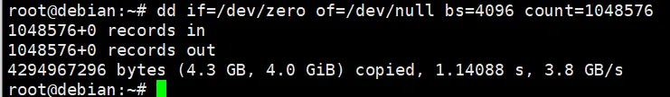 - count=1048576:总共读写1048576次,合计测试4GB内存(4096*1048576=4294967296字节=4GB),根据实际情况调整。