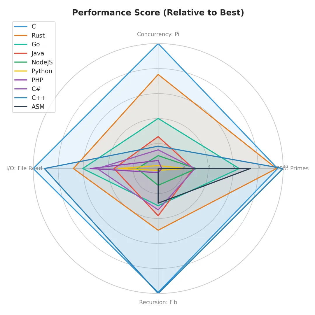 在软件开发的世界里,关于编程语言性能的争论从未停止。是选择“贴地飞行”的 C/Assembly 以榨干 CPU 的每一个周期,还是拥抱 Python/JavaScript 的开发效率而牺牲部分运行时速度?或者,选择 Rust、Go、.NET 10 这样的现代中间路线?