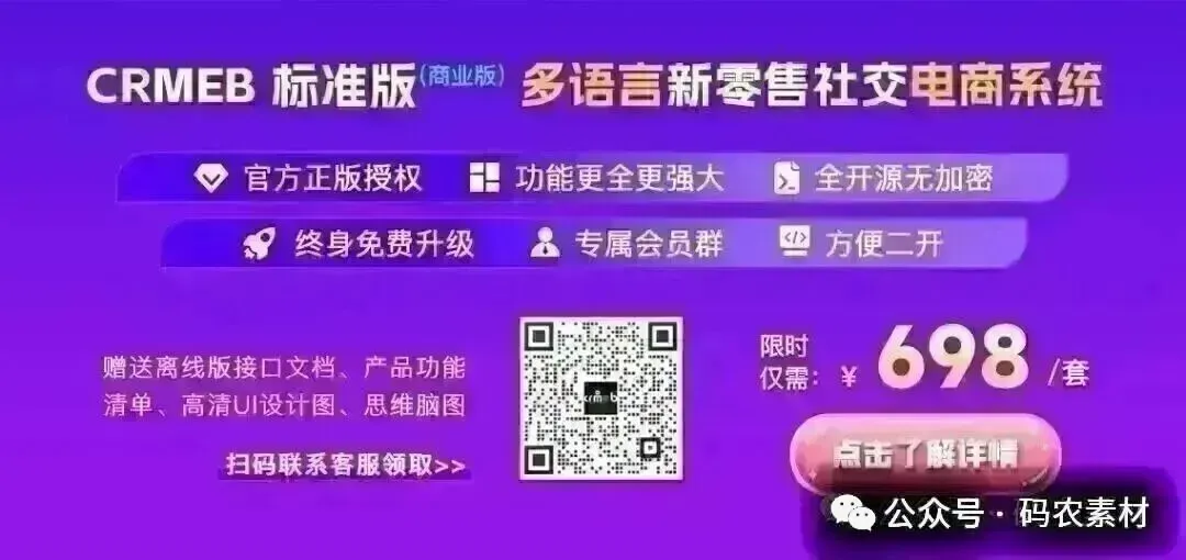 Git仓库:https://gitee.com/ZhongBangKeJi/CRMEB声明:本站所有文章如无特殊说明或标注,均来自互联网发布。如若本站内容侵犯了原著者的合法权益,可联系我们进行处理。