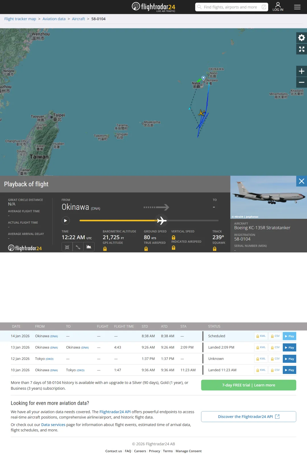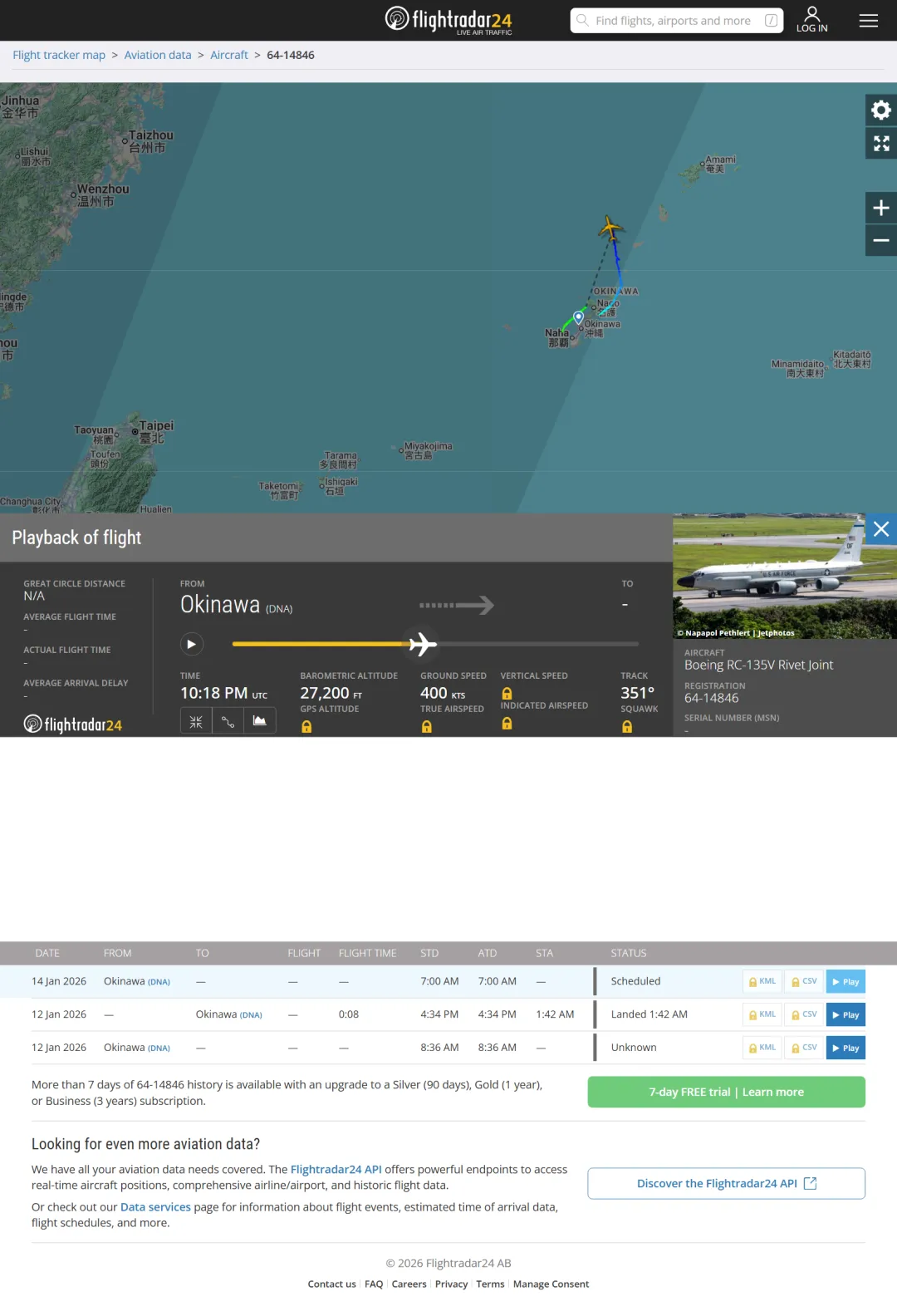一架 RC135 电子战姬从琉球起飞,不做任何经停,空中直飞鹰酱本土