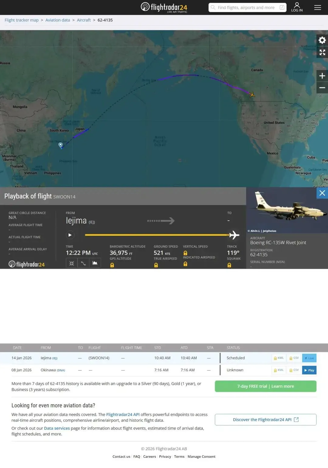 一架 RC135 电子战姬疑似向琉球北向飞去