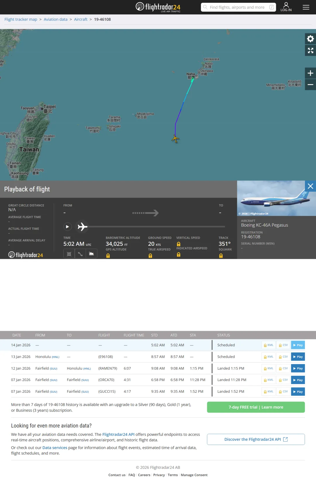 一架 KC135 加油姬在琉球正南方反复盘旋