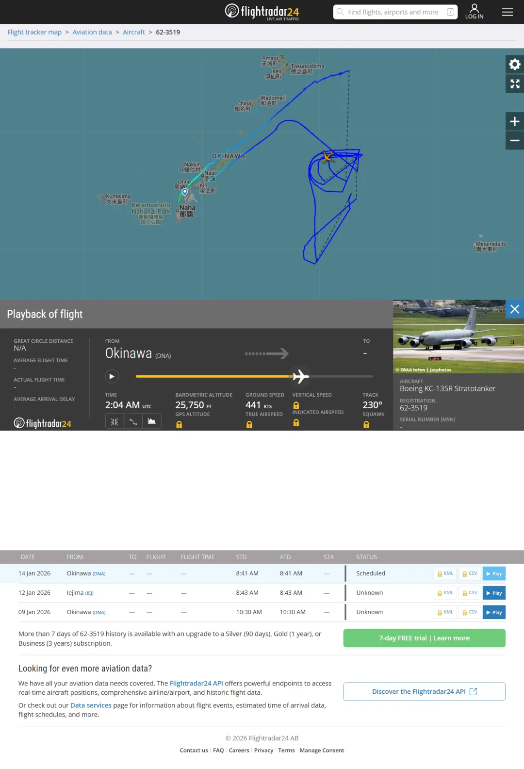 一架 KC135 加油姬在琉球正东方反复盘旋