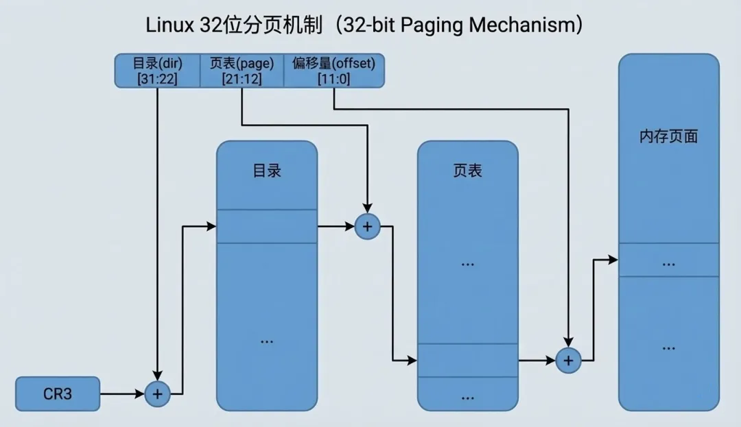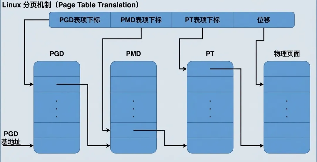 无论底层的硬件实际长什么样,Linux 内核的上层代码(如内存管理、进程调度)都统一默认:“我们拥有三级页表”。这是 Linux 内存管理的逻辑本质。