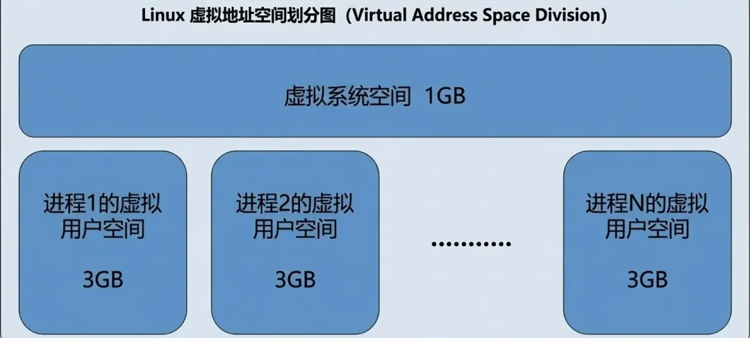 用户空间:较低的 3GB(虚地址 0x00000000 至 0xBFFFFFFF),供各个进程使用。