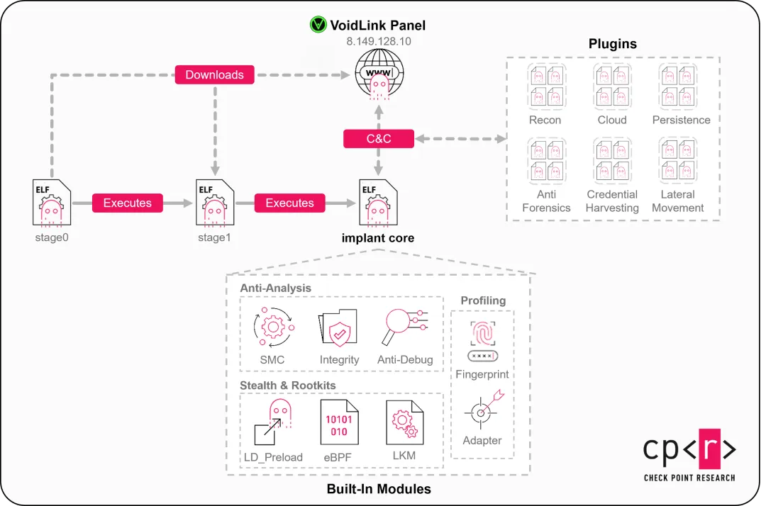 网络安全研究人员披露了一个名为VoidLink 的恶意软件框架的详细信息,该框架此前未被记录,功能丰富,专门用于长期、隐蔽地访问基于 Linux 的云环境。