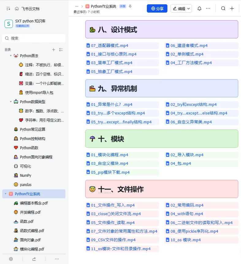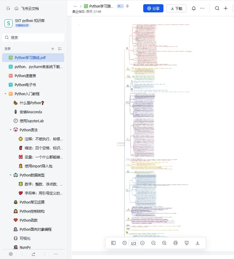 粉丝福利:最后给大家分享一下近期整理的Python知识库,非常适合想要入门Python的朋友进行自学,几乎涵盖了Python学习的全模块,并且在持续更新中,获取方式见文末。