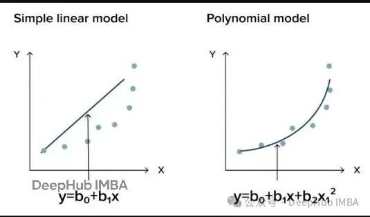 为了解决线性假设的局限性,一种常见的方法是引入多项式项来处理非线性关系。当自变量X与因变量y之间存在曲线关系时,可以通过添加多项式项来扩展基础线性模型。