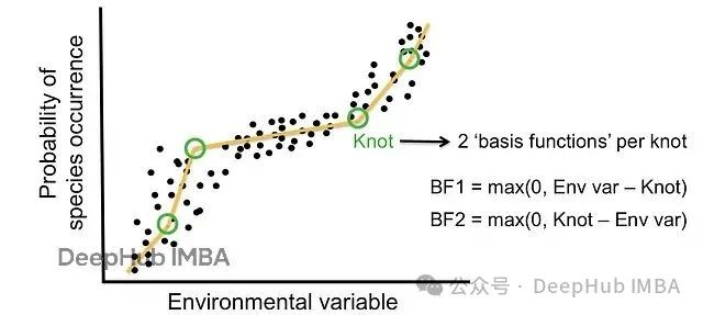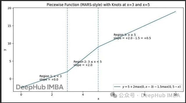 以具体示例说明,对于某个变量X,MARS可能识别出在X < 3的区域内存在一种斜率关系,在3 ≤ X < 5的区间内存在另一种斜率关系,而在X ≥ 5的区域内又呈现第三种斜率模式。