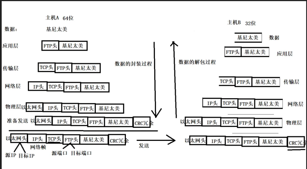 网络帧:类似json,是为了避免系统之间的字节长长度,导致数据混乱。TCP/UDP协议