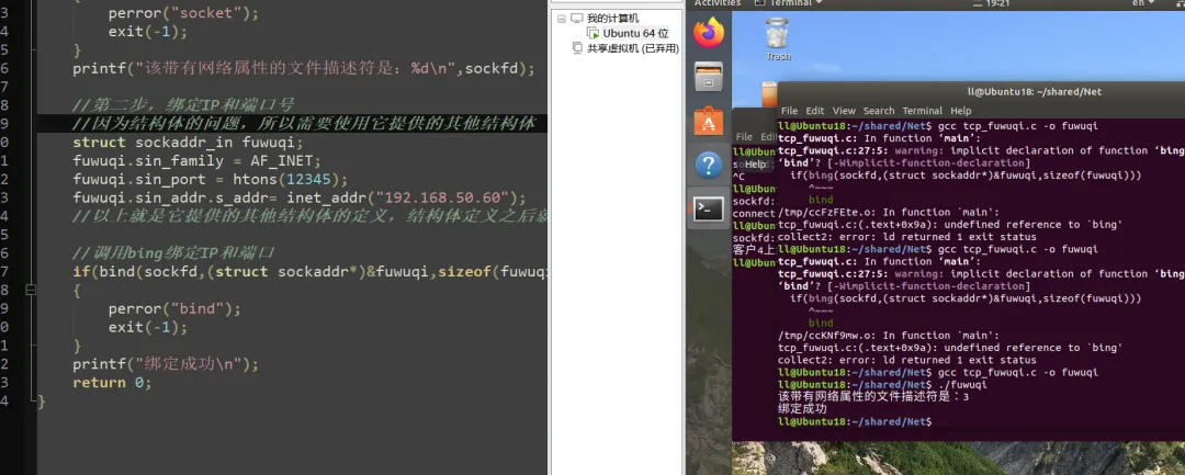 2>绑定IP和端口号 ----- 全课程最长最难部分intbind(int sockfd, conststruct sockaddr *addr,socklen_t addrlen); 功能: 给sockfd绑定IP和端口号 参数: sockfd addr:结构体指针,是需要用来赋值的 addrlen:addr的长度 返回值: 成功返回0 失败返回-1,并设置错误码