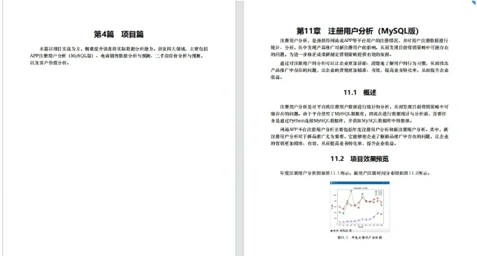 本篇以项目实战为主,侧重提升读者的实际数据分析能力。涉及四大领域,主要包括APP注册用户分析(MySQL版)、电商销售数据分析与预测、二手房房价分析与预测,以及客户价值分析。