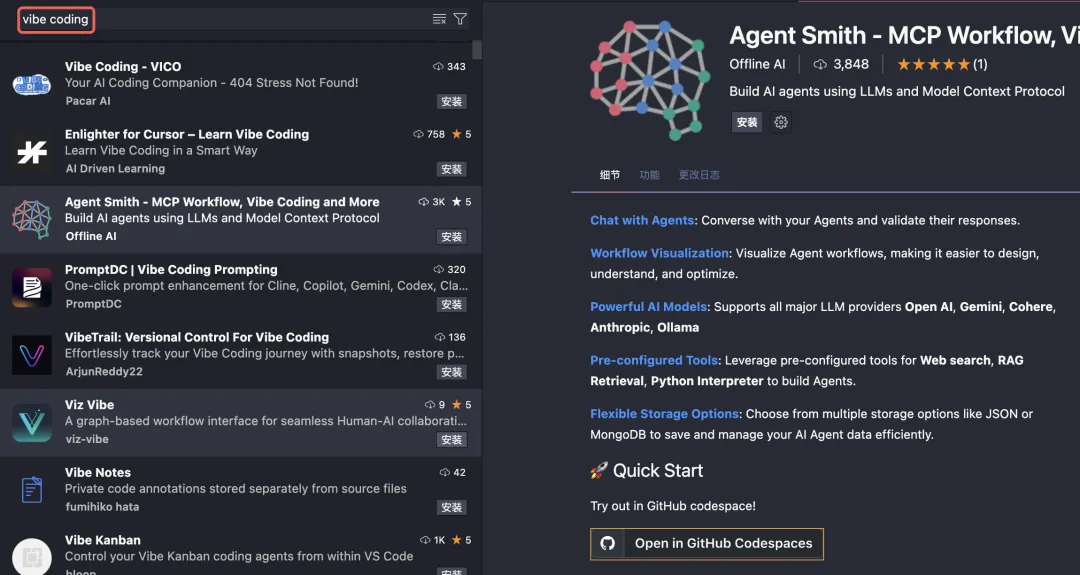 大家可以在 vscode 插件里面搜索「vibe coding」然后安装测试看看