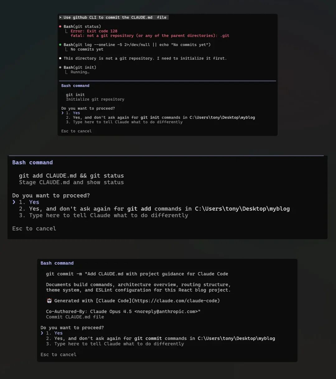在终端进入myblog文件夹,输入/init——见证奇迹的时刻到了!它会自动扫描整个项目, 然后问你要不要生成「CLAUDE.md」文件(类似项目说明书),选「yes」就行。打开这个文 件一看:项目结构、依赖列表、甚至我上个月写的注释都给整理得明明白白,比我自己还了 解我的代码🤣