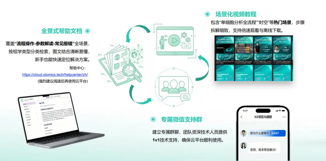 ● 助力个人科研工作高效开展。如:某博士,代码能力薄弱,自行学习生信分析难度高、周期长。使用云平台0代码3天搞定单细胞时空组学分析,提前完成分析,论文比预期早 3 个月发表高分期刊。