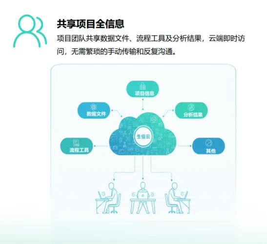 ● 项目数据、流程工具、分析结果云端共享,即时访问;